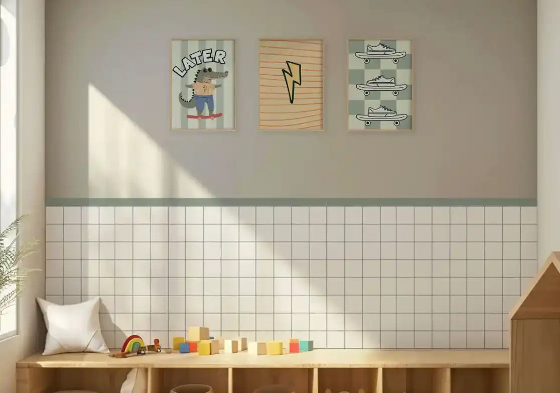 Mix and match products from a curated collection of decals, prints, wall panels and scalloped borders to create their personalised space.