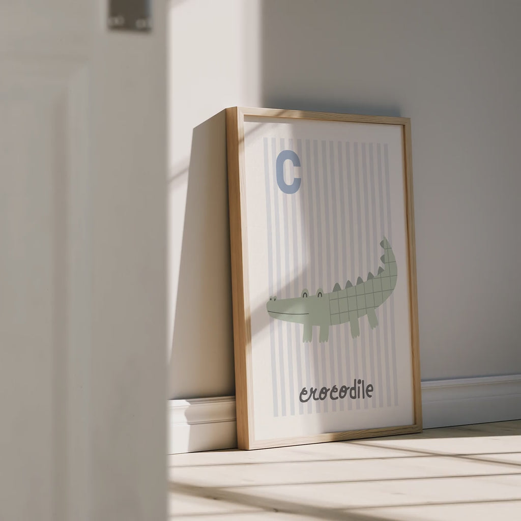 Croc-loving kids will adore this friendly little croc. C is for Crocodile brings gentle colours, cool stripes and a playful character to brighten any bedroom or play corner.