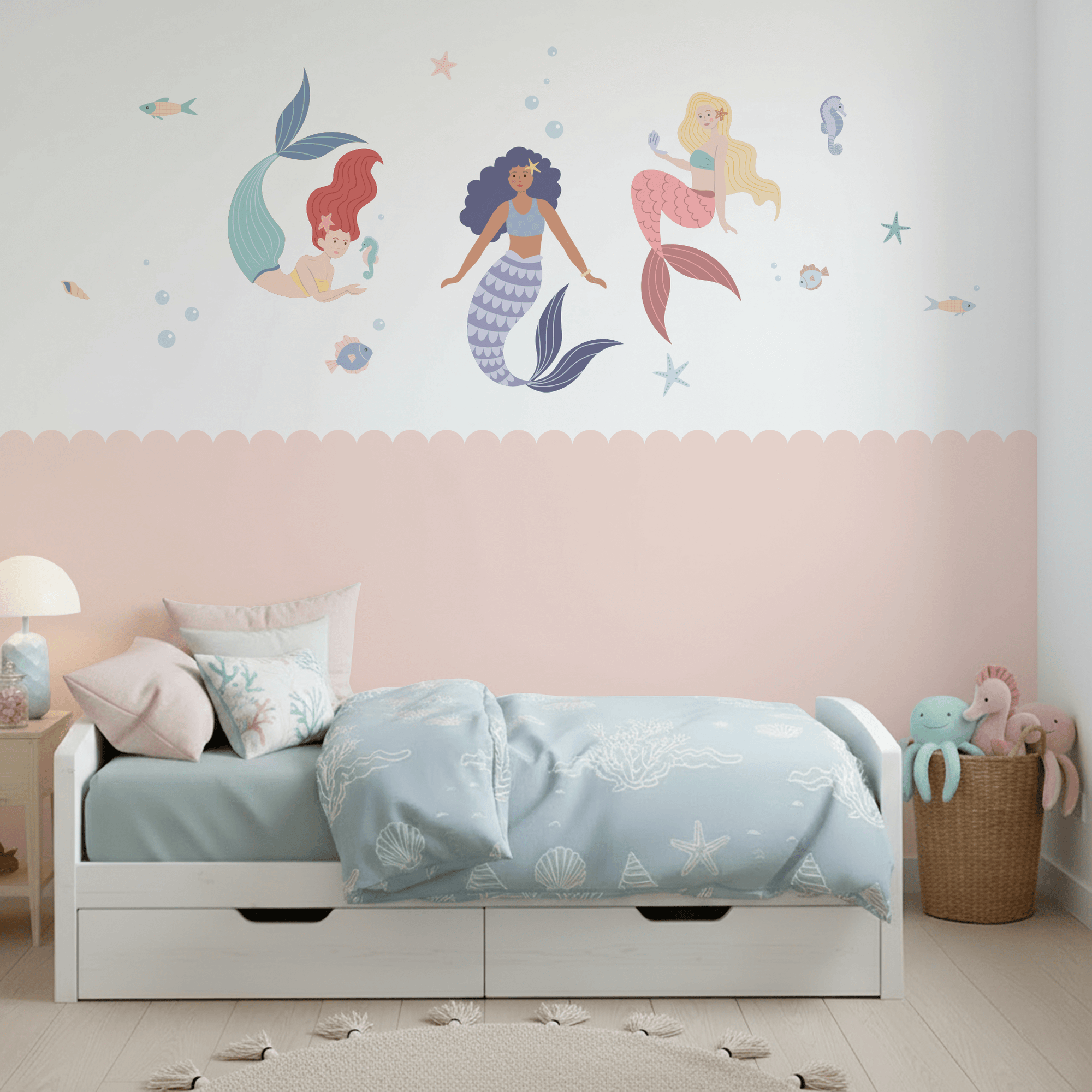 Say hello to the Splash Squad, a sweet mix of mermaids and sea creatures made for calming, ocean inspired spaces. Soft colours, gentle details, and easy styling come together to create the perfect under the sea moment for bedrooms and playrooms.