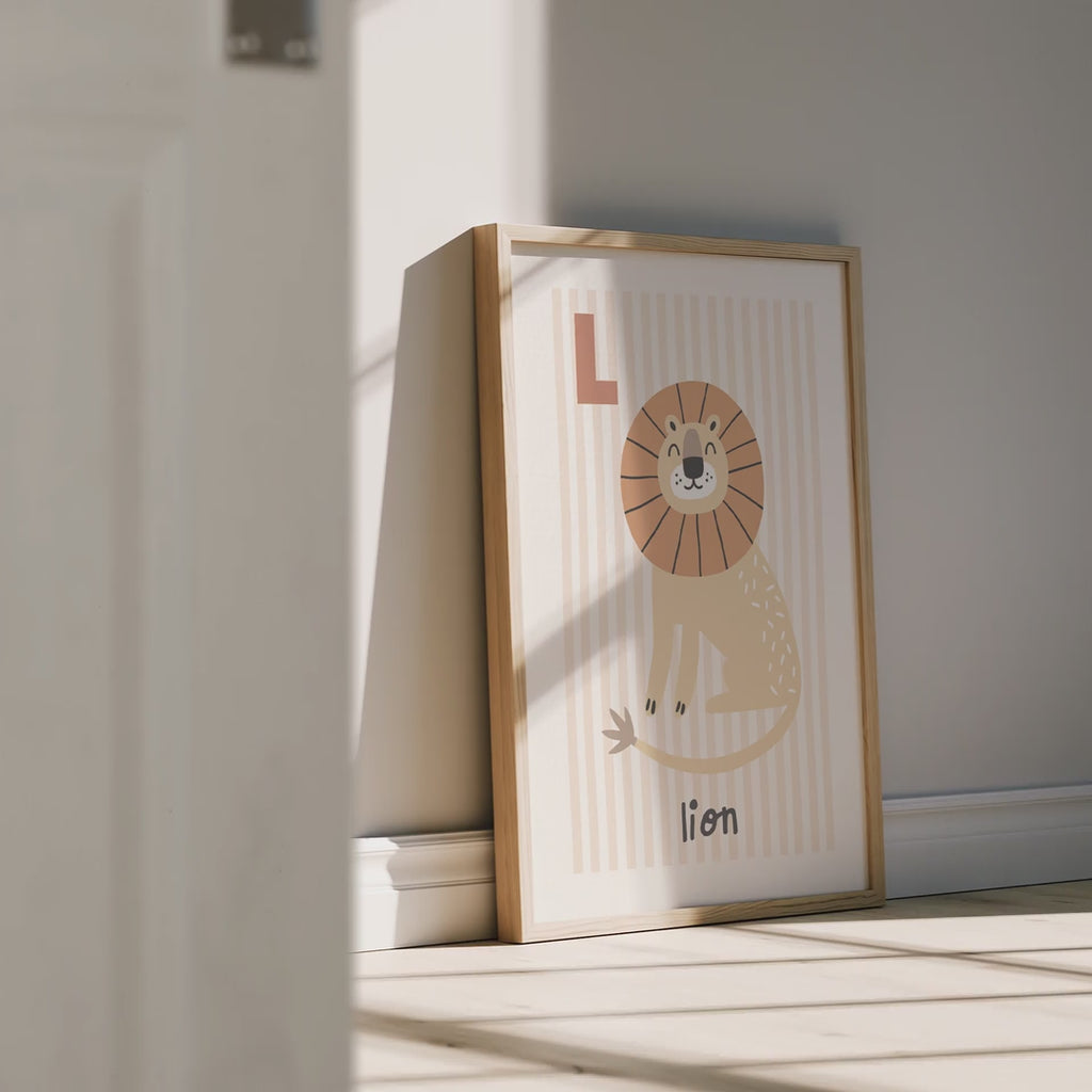 Meet the king of the playroom. L is for Lion brings a cool, confident little lion into your child's space with soft colours and friendly charm. Perfect for adding a warm, brave touch to bedrooms and playrooms.