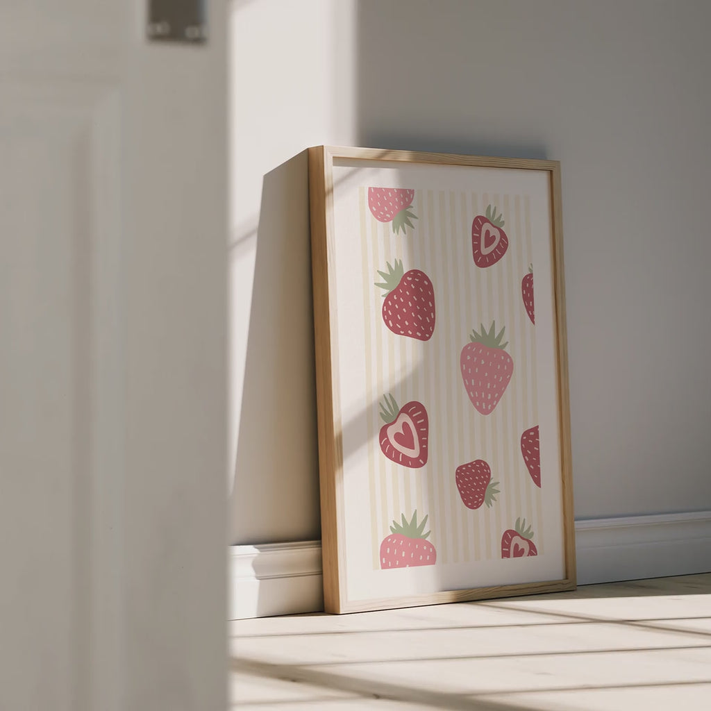 A fun burst of berry energy. The Strawberries Wall Print brings playful charm to any kids space with its scattered strawberry pattern and fresh, feel good vibe. An easy way to add personality without overthinking the styling.